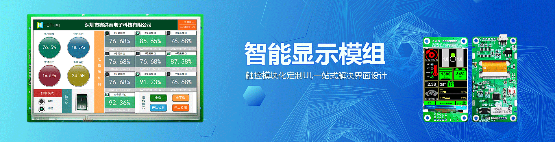 鑫洪泰EzUI系列智能液晶顯示模塊,即:E(easy容易的)、z(zero零代碼)、UI(用戶界面)。 EzUILet 系列模塊最大的特色為使用簡便、功能豐富,用戶對其使用可簡可繁。用戶可以使用界面開發(fā)工具軟件(EzUITool)進(jìn)行人機(jī)界面的設(shè)計、編輯、控件配置、響應(yīng)設(shè)置等,將工具軟件生成的資源文件復(fù)制到 EzUILet 系列模塊之中,便可達(dá)成所需人機(jī)交互界面的設(shè)計制作,而無需用戶單片機(jī)或其它控制器的編程控制。而為滿足有特殊要求的用戶,EzUILet 系列模塊還保留有大部分顯示控制指令,以便于用戶可以更自由的對模塊顯示進(jìn)行控制。 EzUILet系列與 EzUI 系列:EzUILet系列模塊由 EzUI 系列模塊衍生,也屬于 EzUI 系列模塊;相對EzUI 系列模塊,EzUILet系列精簡了部分控件的屬性,并且將模塊 USB 設(shè)備接口改為虛擬串口,資源文件的寫入方式與原 EzUI 系列不同;EzUILet 系列模塊還將資源存儲器的容量降低,使之更合理,可靠性更好。EzUILet系列當(dāng)中的無觸摸版本需要用戶 MCU發(fā)送按鍵消息,并由這些按鍵消息觸發(fā)模塊內(nèi)部 GUI系統(tǒng)的事件,這點與帶觸摸的 EzUI 系列模塊是最大的不同之處。EzUILet 系列模塊的 GUI 系統(tǒng)當(dāng)中各個控件的命名仍使用 EzUI 系列模塊的命名。