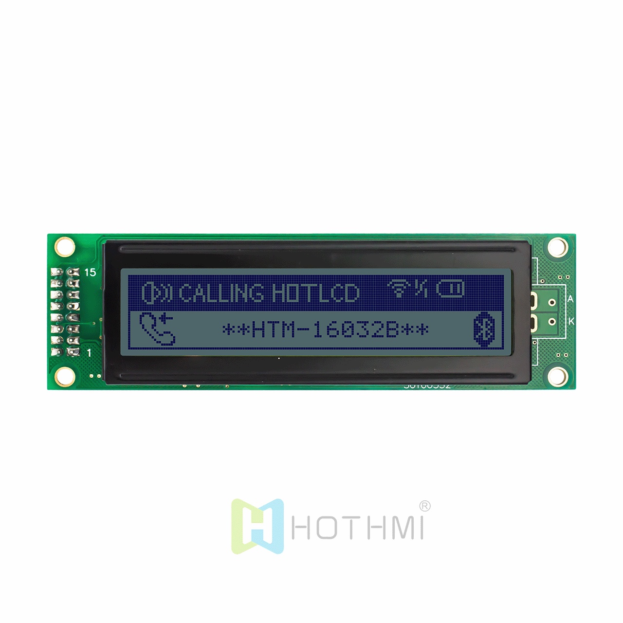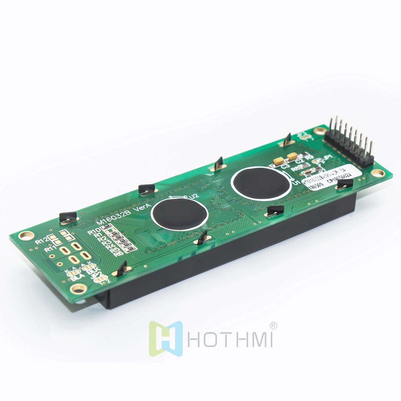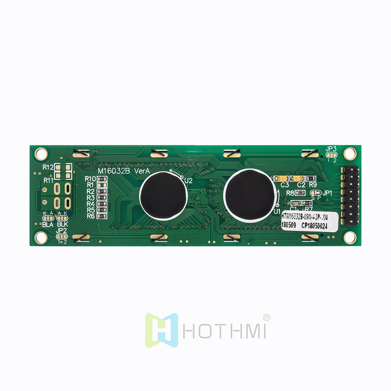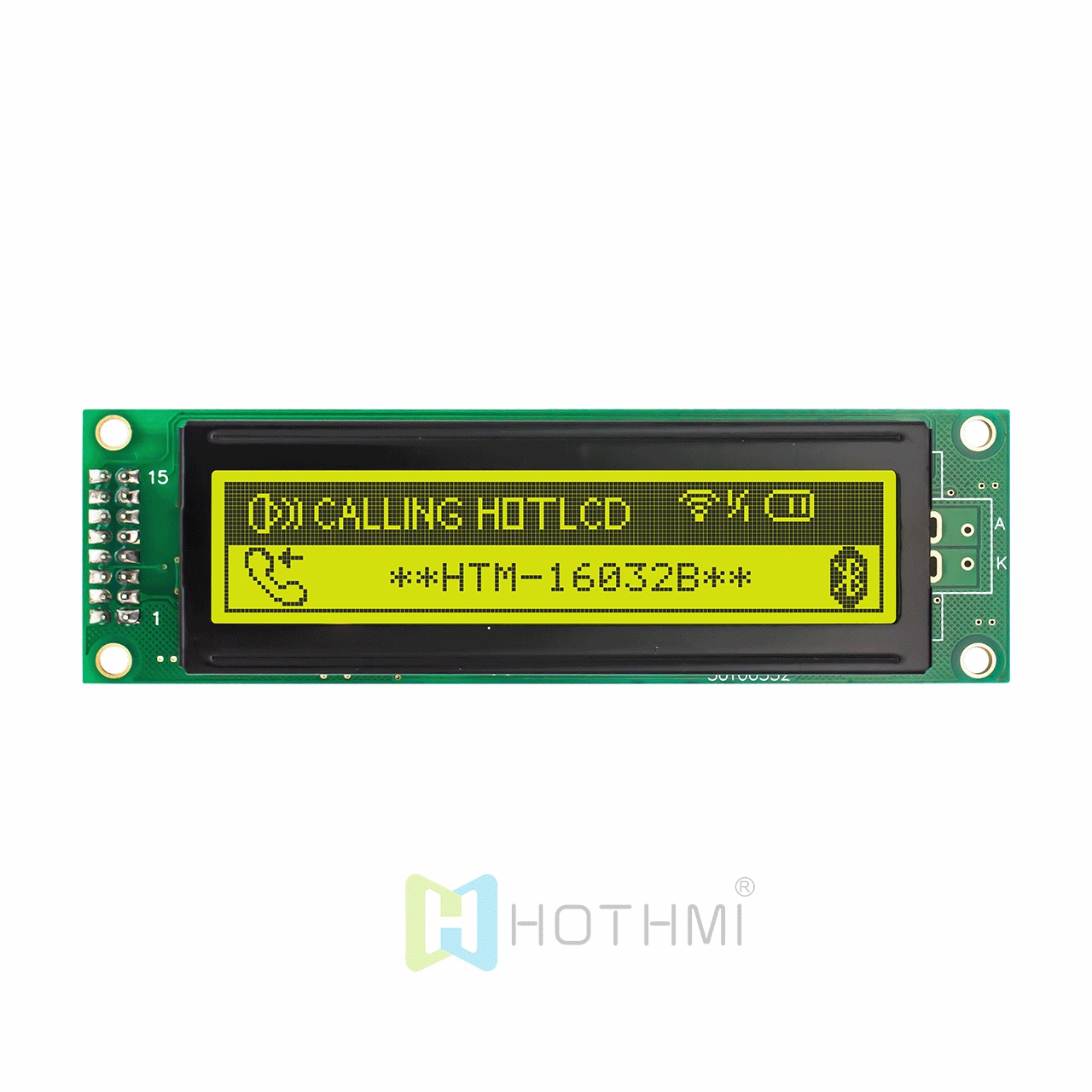The 3.4 inch 160x32 LCD Graphic Module displays dark grey pixels on a yellow-green background. This transflective LCD display is engineered to provide optimal visibility in a variety of lighting conditions in many different environments. In bright sunlight, the display uses its reflective layer to reflect ambient light back to the viewer, making the screen easy to read. In darker environments, the LCD has a strong built-in backlight that provides high contrast and displays clear graphics to the viewer. This advanced display technology ensures that the display is always easy to read regardless of the lighting conditions.