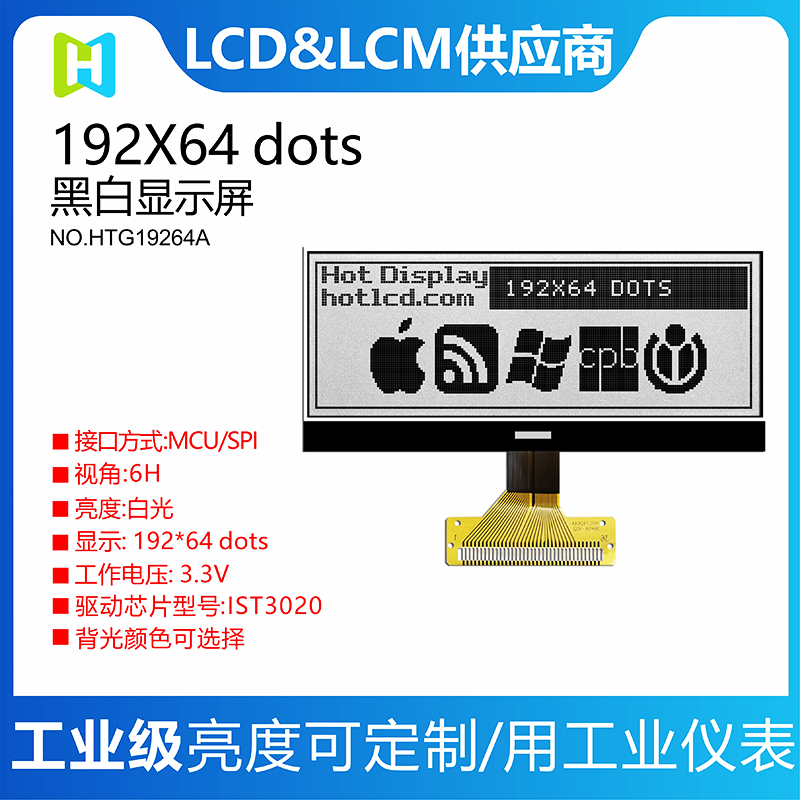 • Model : 192x64 COG LCD Graphic/HTG19264A
