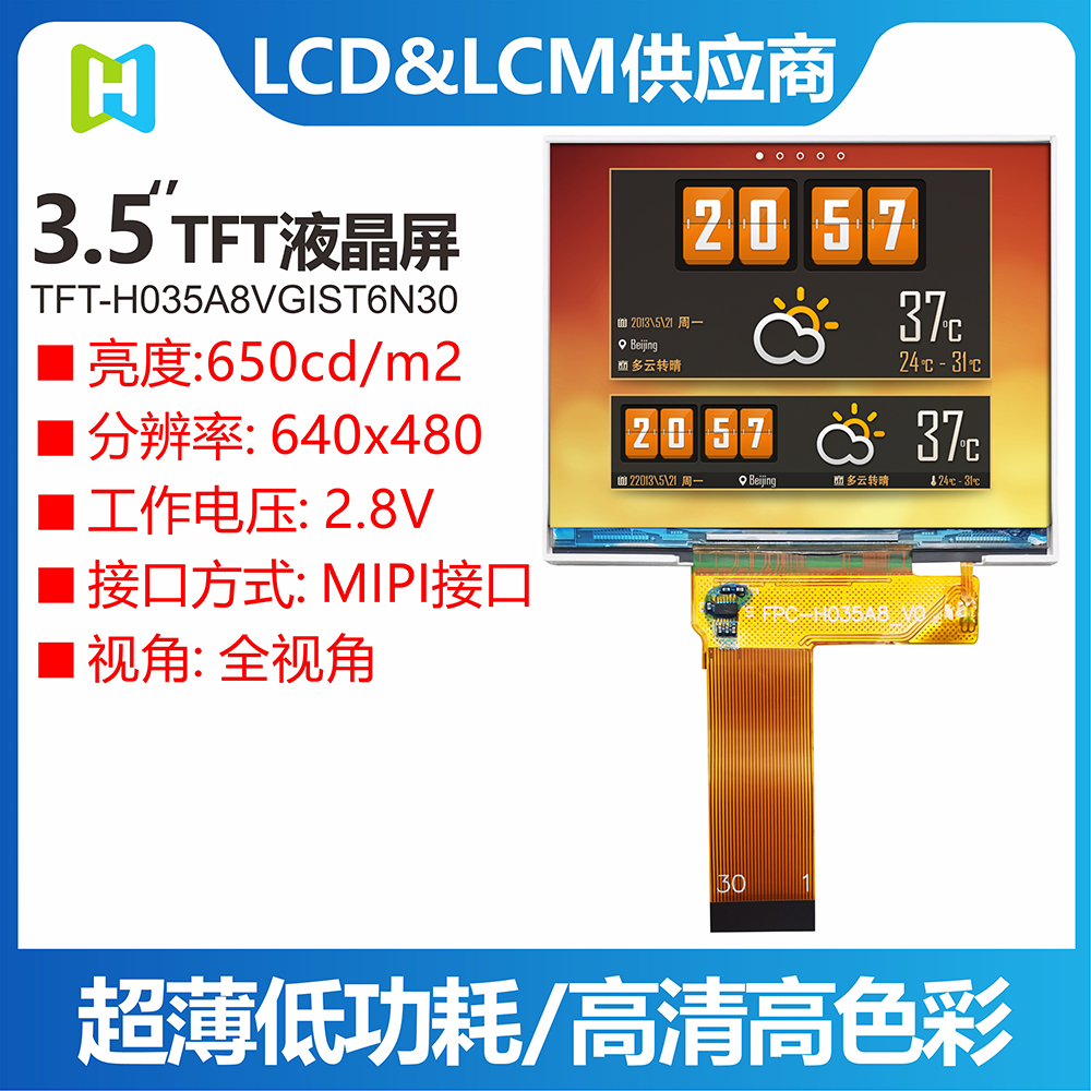 • Model : 3.5 inch TFT /640x480 resoliution/Full view/MIPI interface/Industrial grade/TFT-H035A8VGIST6N30
