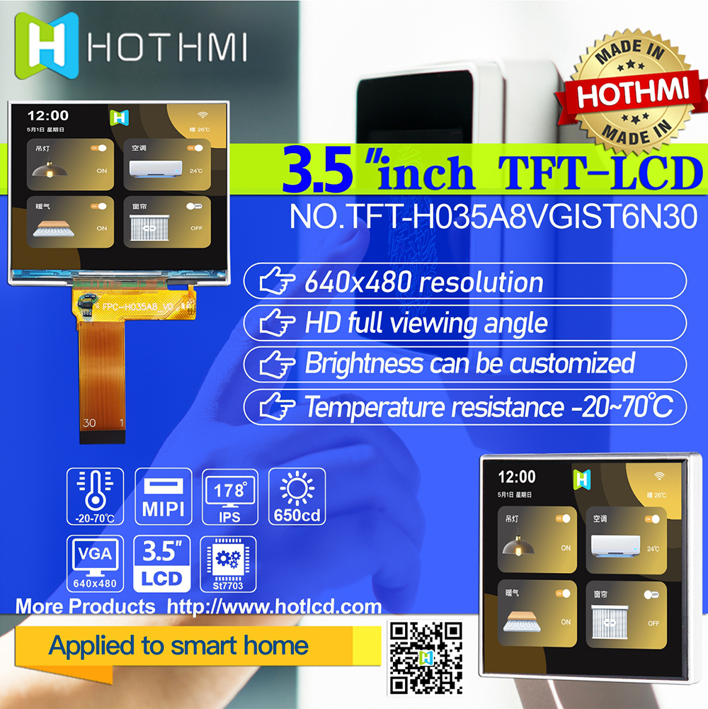 Location:Home  >  Product center  >  TFT display  >  TFT display standard products | Full-view TFT color screen | High-brightness series TFT  >  掌機(jī)3.5寸TFT顯示屏/640x480分辨率/全視角/MIPI接口/工業(yè)級(jí)/TFT-H035A8VGIST6N30