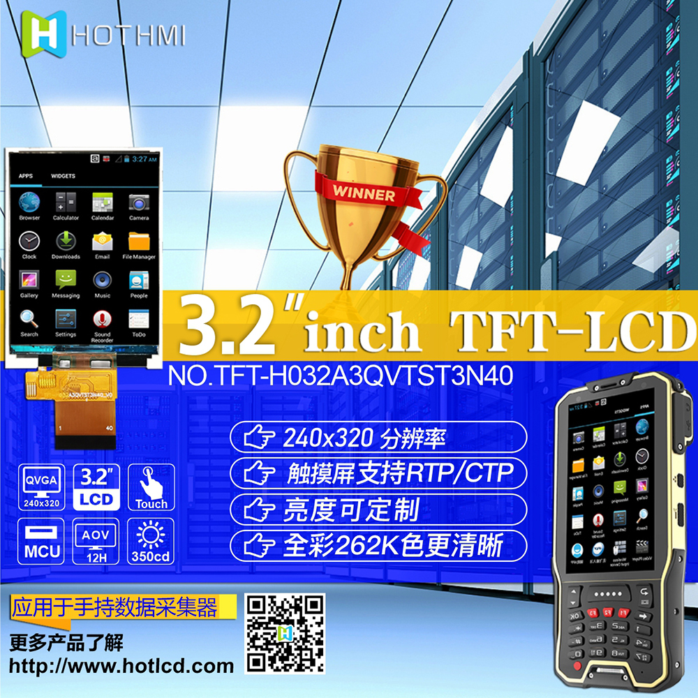 • Model : 3.2 inch TFT LCD vertical screen/Handheld collector display/240*320 resolution/IPS/industrial grade/MCU interface/TFT-H032A3QVTST3N40