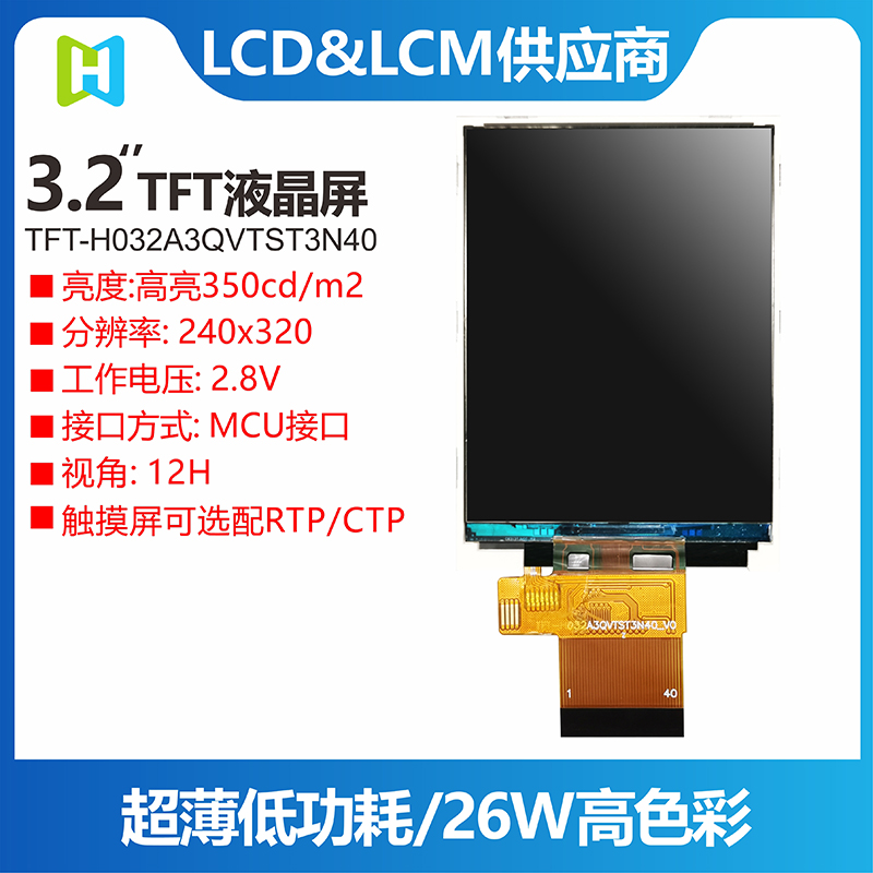 Location:Home  >  Product center  >  TFT display  >  TFT display standard products | Full-view TFT color screen | High-brightness series TFT  >  3.2寸TFT液晶屏/手持采集器顯示屏/240*320分辨率/工業(yè)級/MCU 接口/TFT-H032A3QVTST3N40