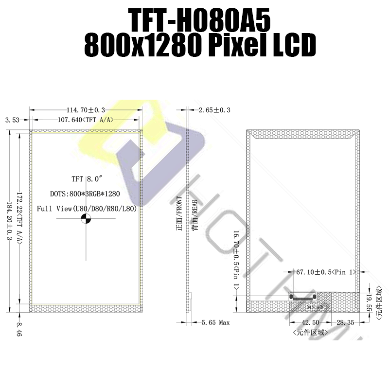 Location:Home  >  Product center  >  TFT display  >  TFT display standard products | Full-view TFT color screen | High-brightness series TFT  >  8.0英寸 800x1280 LCD 顯示屏 IPS MIPI JD9365 陽(yáng)光下可讀,用于工業(yè)控制 TFT-H080A5HDIFT6N40