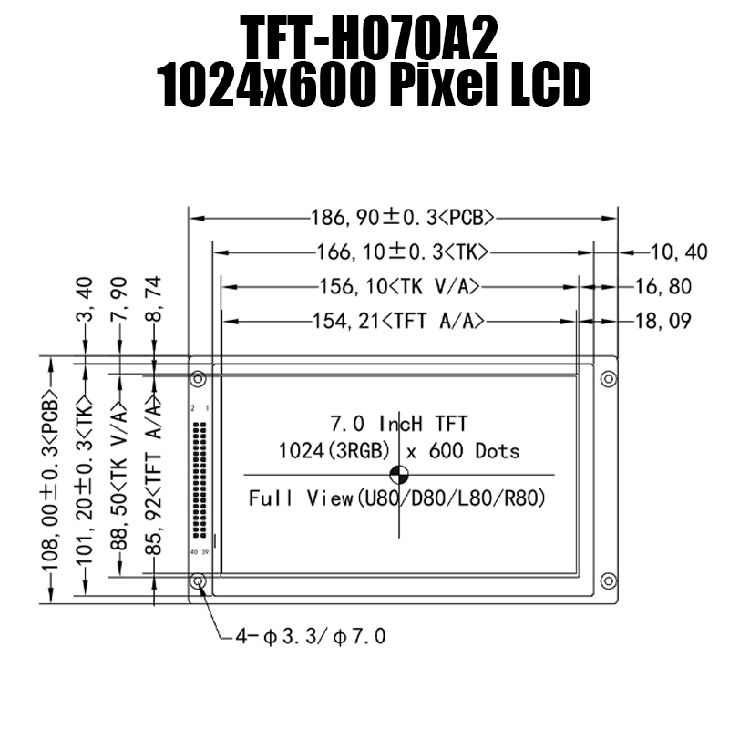 • Model : 7 Inch IPS 1024x600 TFT LCD Module Display Panel With Controller Board HTM-H070A2-RGB-B06