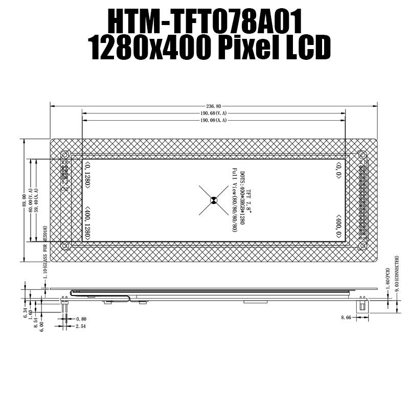 Location:Home  >  Product center  >  TFT LCD Modules(with board)  >  TFT Modules |MCU8/16|SPI 3/4L|WIth Board  >  7.84寸條形 電容式觸摸 IPS TFT液晶顯示屏 1280x400 MCU 適用于車載顯示器 HTM-TFT078A01-MCU