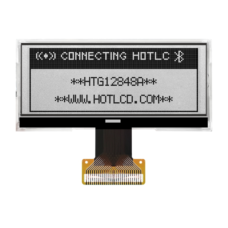 128x48 COG LCD Graphic/HTG12848A COG 128x48 81.1x38.3x4.9 75.3x28.3 66.52x24.92 0.52x0.52 6H WHITE FPC-28PIN MCU Anti-static ESD 8KV -20~70℃ 3.3v ST7565R
