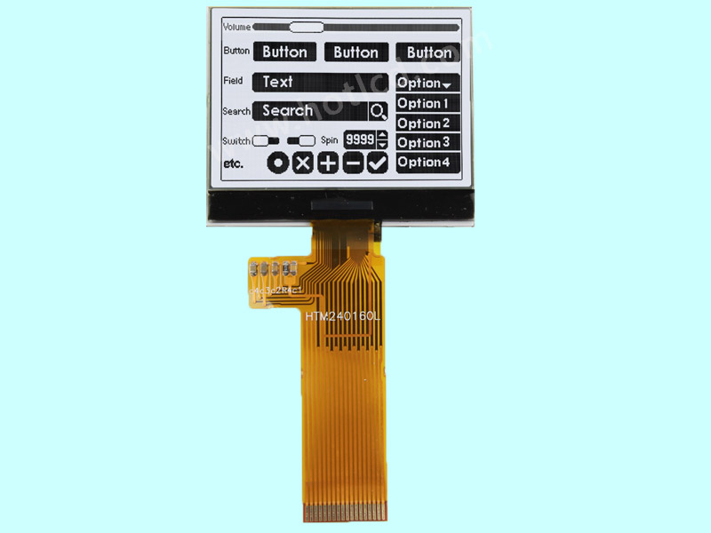 240x160 COG LCD Graphic/HTG240160L COG 240x160 60.0x49.5x5.6 56.0x38.7 51.94x34.82 0.216x0.216 6H WHITE FPC-18PIN MCU -20~70℃ 3.3v UC1698