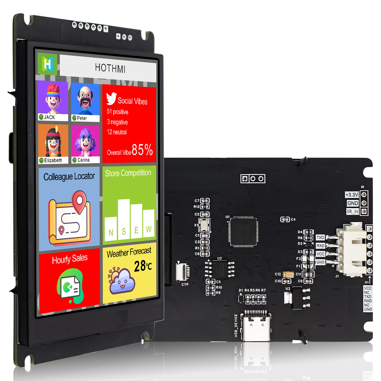 紅外遙控接口:兼容NEC協(xié)議,可自定義遙控鍵值,無觸摸版本也可通過遙控器操作界面。
