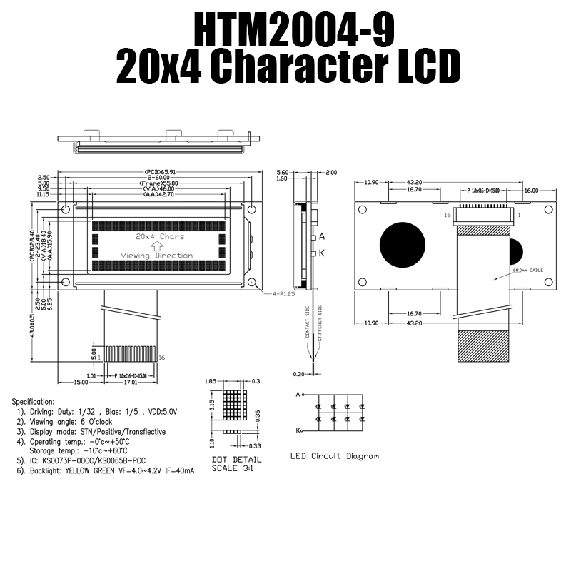 • 型號: 20x4 字符液晶屏/HTM2004-9