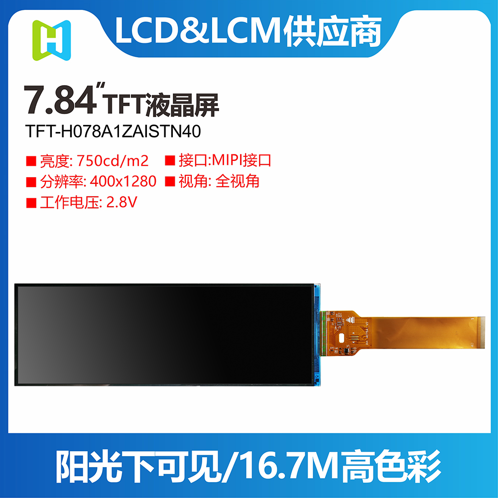 TFT- H078A1ZAISTN40是一款7.84寸采用IPS面板技術(shù)的TFT液晶顯示器模塊。此款TFT-LCD分辨率400 x 1280 pixels。TFT- H078A1ZAISTN40模塊內(nèi)置ST7703 driver IC,支持MIPI接口,對比度700 (典型值),模塊亮度為700 nits(典型值)。H078A1采用IPS面板技術(shù),視角比TN玻璃更廣范圍為左: 80 / 右: 80 / 上: 80 / 下: 80 度,色彩鮮明,具有飽和自然的優(yōu)質(zhì)畫面。H078A1模塊的驅(qū)動電壓為3.3V,平常黑/透射式LCD,霧面玻璃,屏幕長寬比3:1。。此款模塊的工作溫度是-20℃ 至 +70℃,儲存溫度是 -30℃ 至 +80℃。如果客戶產(chǎn)品應(yīng)用需要使用高亮TFT,可選用TFT- H078A1ZAISTN40模塊,其模塊亮度為700 nits (典型值)。