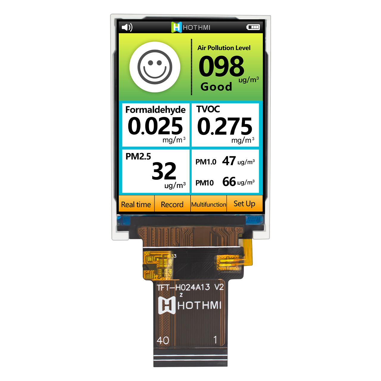 TFT-H024A13VGIST5N40是HOTLCD研發(fā)團隊精心設(shè)計的2.4英寸TFT彩色液晶屏,480*640分辨率,高畫質(zhì),廣視角,16.7M高清色彩,亮度設(shè)置為500cd/m2,內(nèi)置ST7701S控制器 ,支持RGB接口,無需外圍電路,20PIN插件FPC可接主板(可選連接器),單電源DC 3.3V供電。 TFT 模塊可配備觸摸屏,所有材料均符合 RoHS 標準。 廣泛應(yīng)用于各種儀表、智能設(shè)備、分析儀器、手持儀表、行車記錄儀等:8051、PIC、AVR、ARDUINO、ARM、樹莓派等。