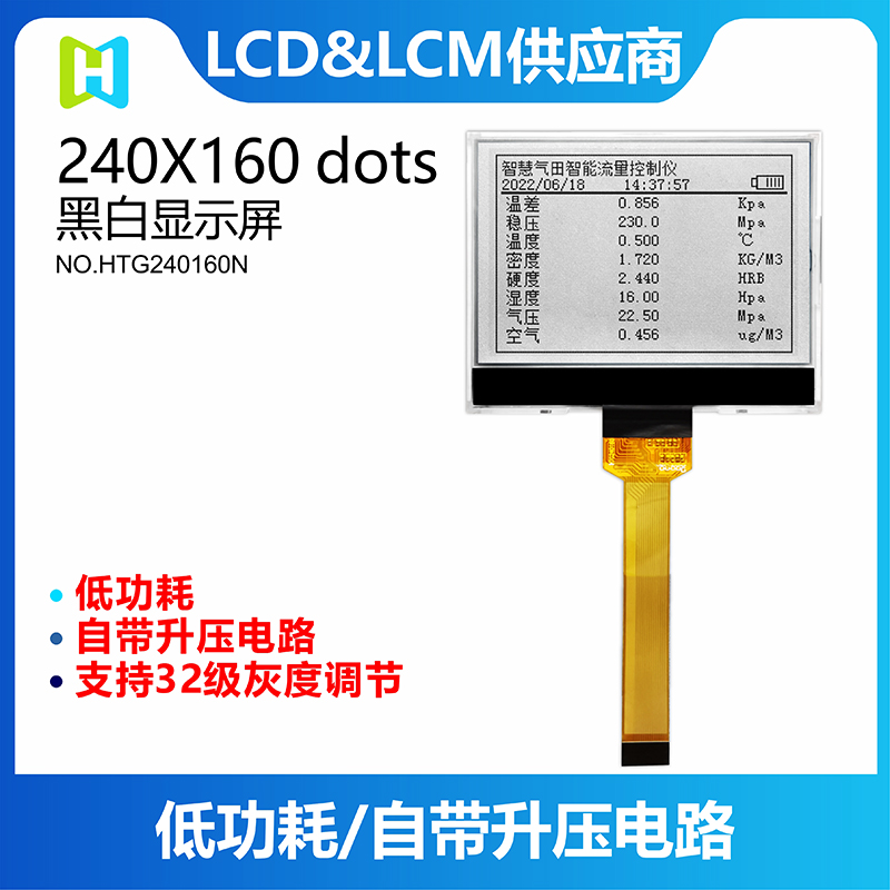 HTG240160N是一款可應用在智慧油氣、油田儀器儀表的COG點陣液晶顯示屏,不僅低功耗還自帶升壓電路,支持32級灰度調節(jié),層次感鮮明。