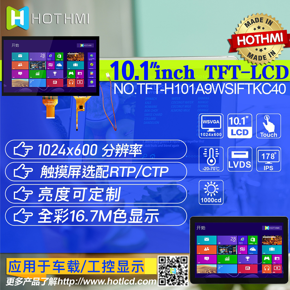 TFT-H101A9WSIFTKC40 是一款 10.1 英寸寬溫 IPS TFT-LCD 顯示器,帶有投射電容式觸摸屏,分辨率為 1024x600 像素。模塊內置EK79001+EK73215驅動IC,支持LVDS接口。 TFT-H101A9WSIFTKC40采用IPS面板,具有視角更廣的優(yōu)勢,左:80/右:80/上:80/下:80度(典型),對比度800:1(典型),亮度1000尼特(典型) ) 值),眩光面板,16:9 縱橫比。觸摸屏內置GT9271 IC,支持I2C接口和多點觸控功能。 H101A9 型號具有投射電容式觸控面板 (PCAP),但沒有觸控面板選項 (TFT-H101A9WSIFTKN40)。 TFT-H101A9WSIFTKC40的供電電壓(VCC)為3.0V至3.6V,典型值為3.3V。它可以在 -20°C 到 +70°C 的溫度和 -30°C 到 +80°C 的存儲溫度下工作。
