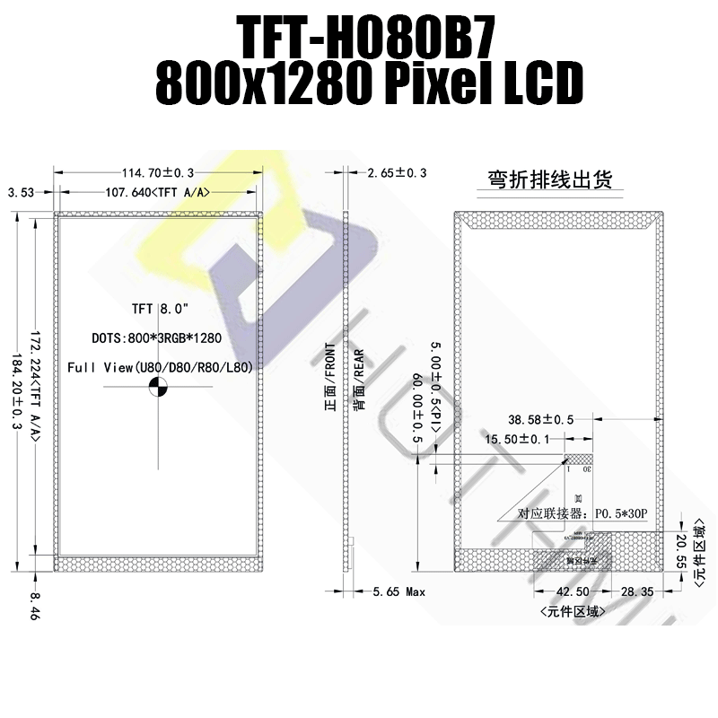 隆重推出 TFT-H080B7HDINV6N30,這是一款 8.0 英寸 IPS LCD 顯示屏,具有 800x1280 像素的高分辨率,可提供具有鮮艷色彩和清晰細(xì)節(jié)的驚人視覺(jué)效果。 憑借其先進(jìn)的技術(shù),該顯示器還設(shè)計(jì)為陽(yáng)光下可讀,即使在明亮的戶(hù)外環(huán)境中也能確保最佳可見(jiàn)度。