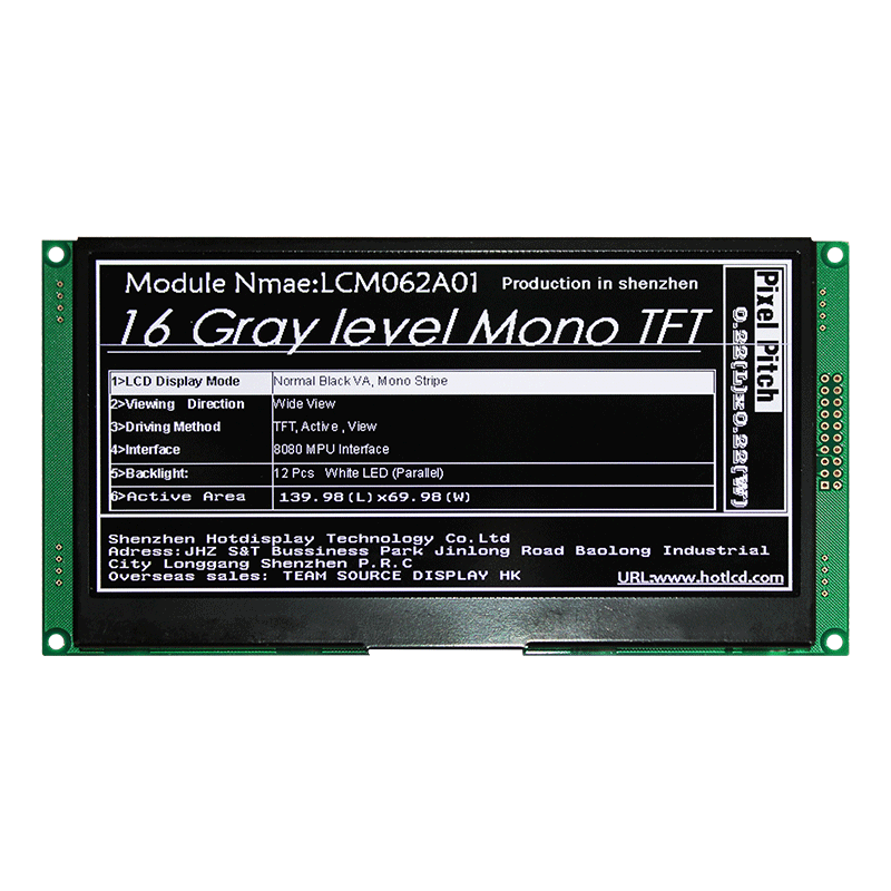 隆重推出我們的 6.2 英寸 MONO TFT LCD 顯示屏,分辨率為 640x320 像素,對比度為 1000:1。 該顯示器專為工業(yè)儀表應(yīng)用而設(shè)計,擁有 6H 視野,適用于各種環(huán)境。