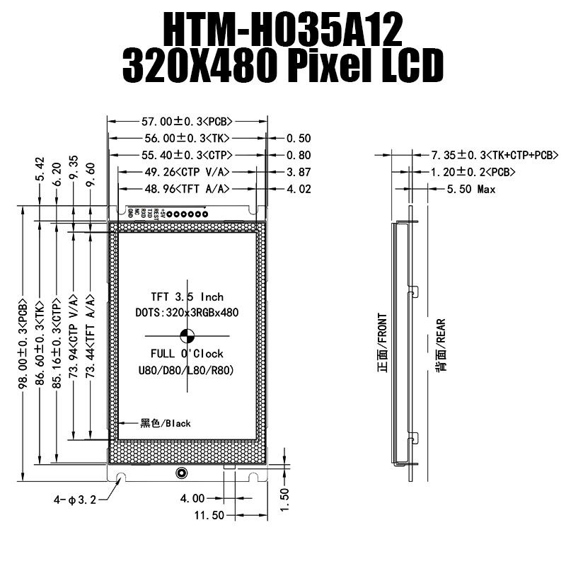 3.5寸 UART 電阻式觸摸屏 320x480 陽(yáng)光下可讀 TFT 模塊面板智能串口屏 HTM-H035A12-UART