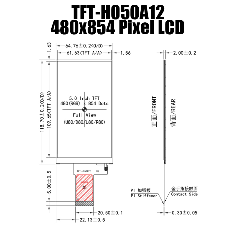 介紹 TFT-H050A12FWIST5N40 - 一款先進(jìn)的 5.0 英寸 IPS TFT LCD 顯示屏,專為工業(yè)計(jì)算機(jī)而設(shè)計(jì)。高達(dá) 480x854 分辨率的優(yōu)越畫質(zhì),為工業(yè)計(jì)算體驗(yàn)提供令人驚嘆的視覺效果和清晰圖像。