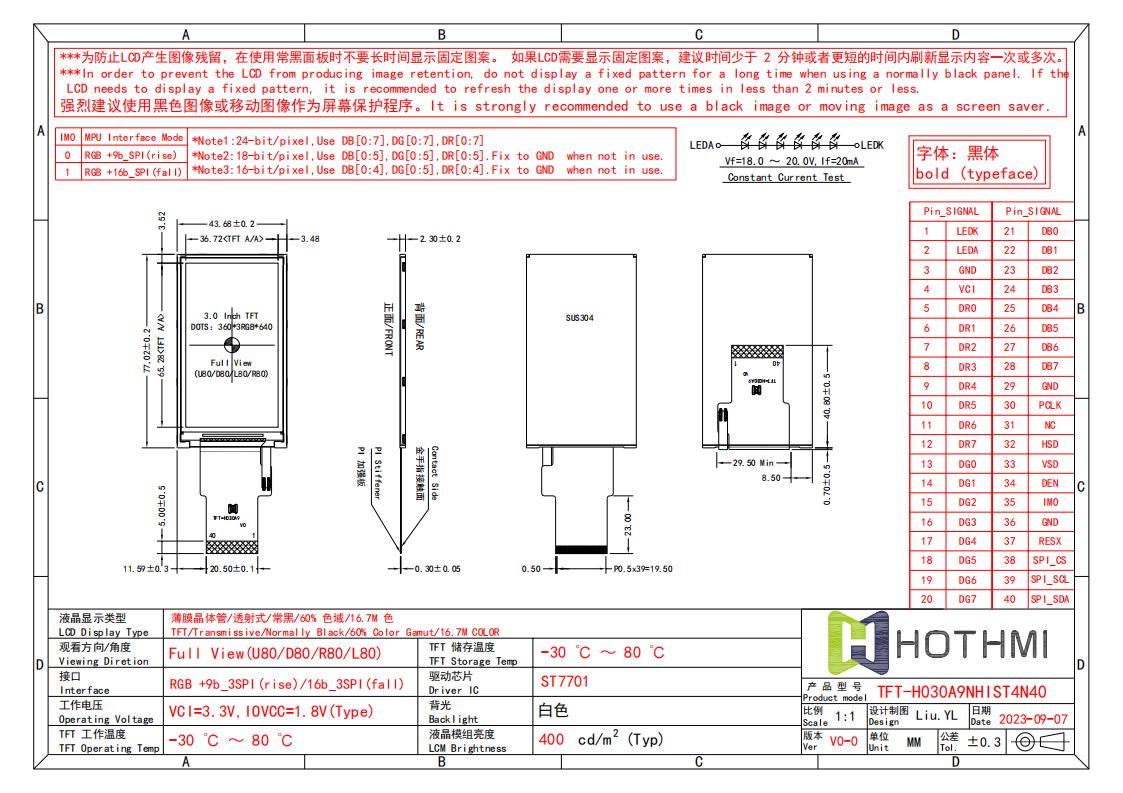 這款TFT-H030A9NHIST4N40是一款高質(zhì)量帶有觸摸功能的3.0英寸IPS TFT液晶顯示屏,專為手持設(shè)備而設(shè)計(jì)。它采用ST7701 Portrait TFT顯示面板,具有360x640高清分辨率,可提供清晰的圖像和生動(dòng)的顏色。這個(gè)顯示屏的廣溫性能范圍為-30℃至80℃,適用于各種工業(yè)計(jì)算機(jī)和設(shè)備。