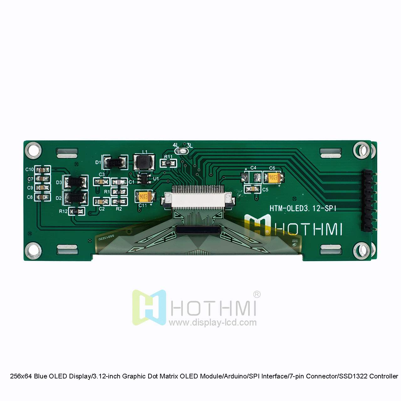 這款產(chǎn)品屬于OLED,OLED顯示技術(shù)是自發(fā)光的,旨在提供高可見度并確保在不同環(huán)境下從任何角度輕松閱讀。這個(gè)型號分辨率256x64 屬于圖形 OLED 顯示屏,觀看效果對比度高,在深黑色背景上呈現(xiàn)明亮的藍(lán)色圖形。同款產(chǎn)品我們還有黃色、綠色、白色可選擇。 借助這款 OLED,您可以期待最快的響應(yīng)時(shí)間。 它是一款無源矩陣顯示器,內(nèi)置SPI接口選項(xiàng),與 Arduino 完全兼容,與許多不同的電子系統(tǒng)無縫集成,適合各種應(yīng)用。 該顯示器還配有 7 針連接器和內(nèi)置 SSD1322 控制器。 HTM-OLED3.12-SPI-B型號專為承受極端工作條件而設(shè)計(jì),在-40至85攝氏度的溫度范圍內(nèi)使用時(shí)表現(xiàn)良好。 它需要 3.3V 電源才能運(yùn)行,并符合 RoHS 標(biāo)準(zhǔn)。