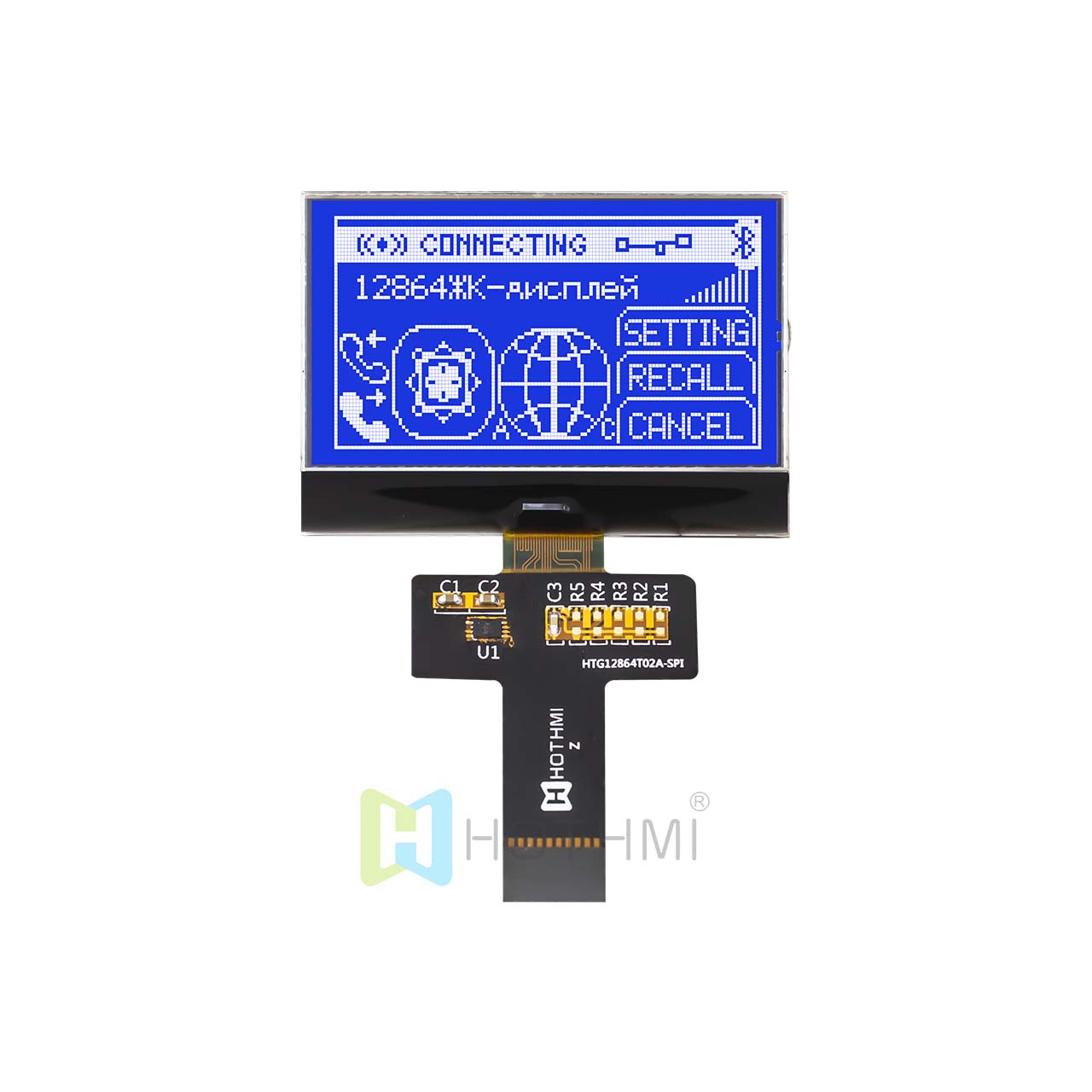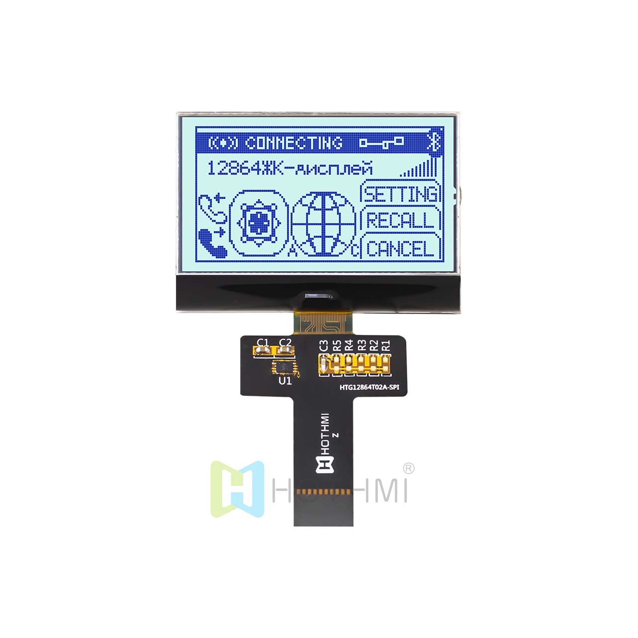 | 2.2 英寸 128x64 圖形 COG | STN+ | 灰底藍(lán)字 | SPI | ST7567 | Arduino HTG12864T02A-11W--SPI-FONT | COG | 128x64 |