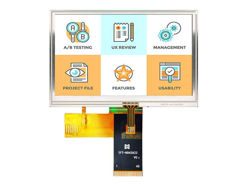 | 4.3 寸SPI TFT彩屏 | 480x272點(diǎn)陣| 陽(yáng)光下可讀|4線電阻式觸摸屏 | MCU TFT 顯示屏 /TFT-H043A22WQIST8R40 | TFT電阻觸控屏 | 480x272 |