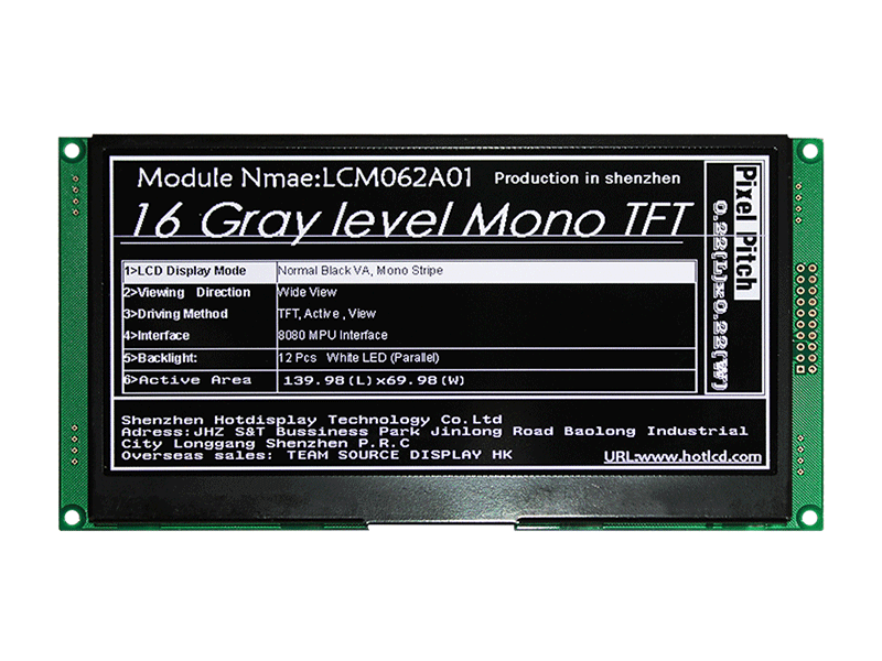 | 4.8寸單色TFT/400*240分辨率/高對比度/HTT048A01 | MONO TFT | 400x240 |