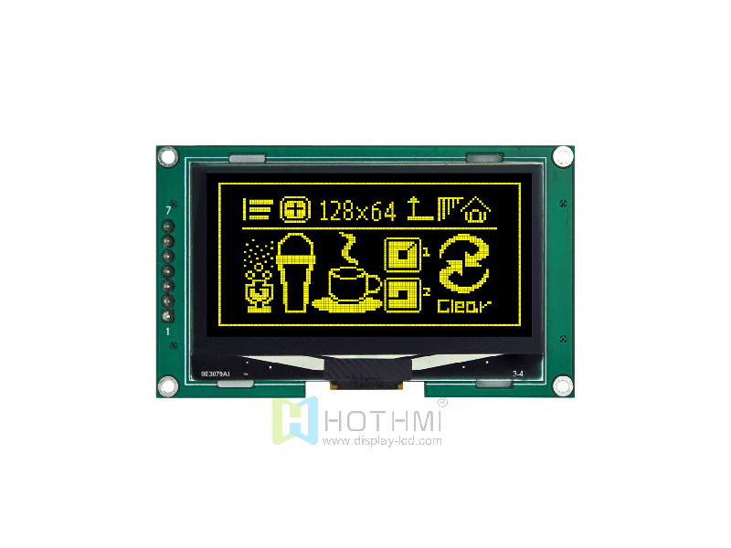 | 2.42英寸128x64黃色點陣圖形OLED/SPI/I2C接口/SSD1309控制器/FPC軟排線/Arduino HTO-OLED2.42-Y | OLED顯示屏 | 128x64 |